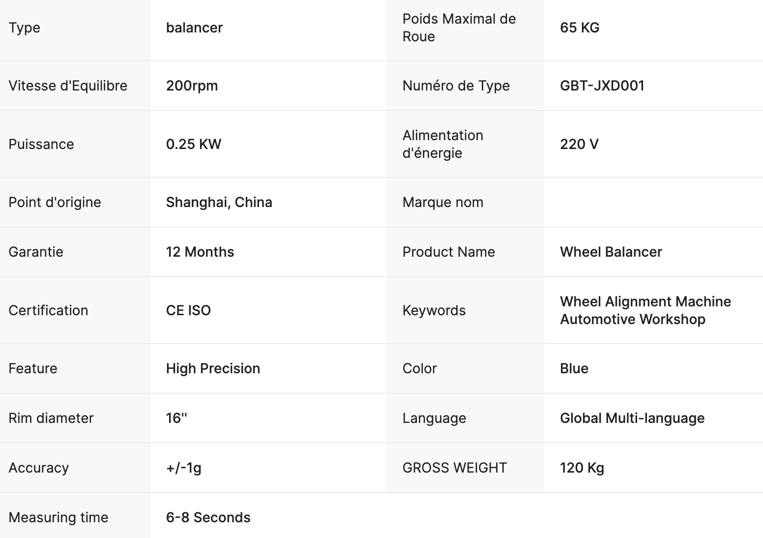 Idéale pour les ateliers de pneus, les centres de service et les garages automobiles, cette machine avancée détecte rapidement le déséquilibre et guide l'opérateur pour un positionnement précis des masses, réduisant ainsi les vibrations et prolongeant la durée de vie des pneus.